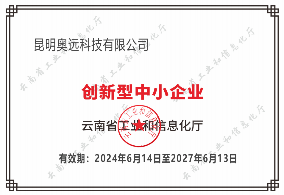 近日,昆明奧遠(yuǎn)科技有限公司被云南省工業(yè)和信息化廳授予“創(chuàng)新型中小企業(yè)”稱號(hào),這一榮譽(yù)不僅是對(duì)公司在創(chuàng)新領(lǐng)域所取得成績的高度認(rèn)可,更是對(duì)其未來發(fā)展的極大鼓勵(lì)。